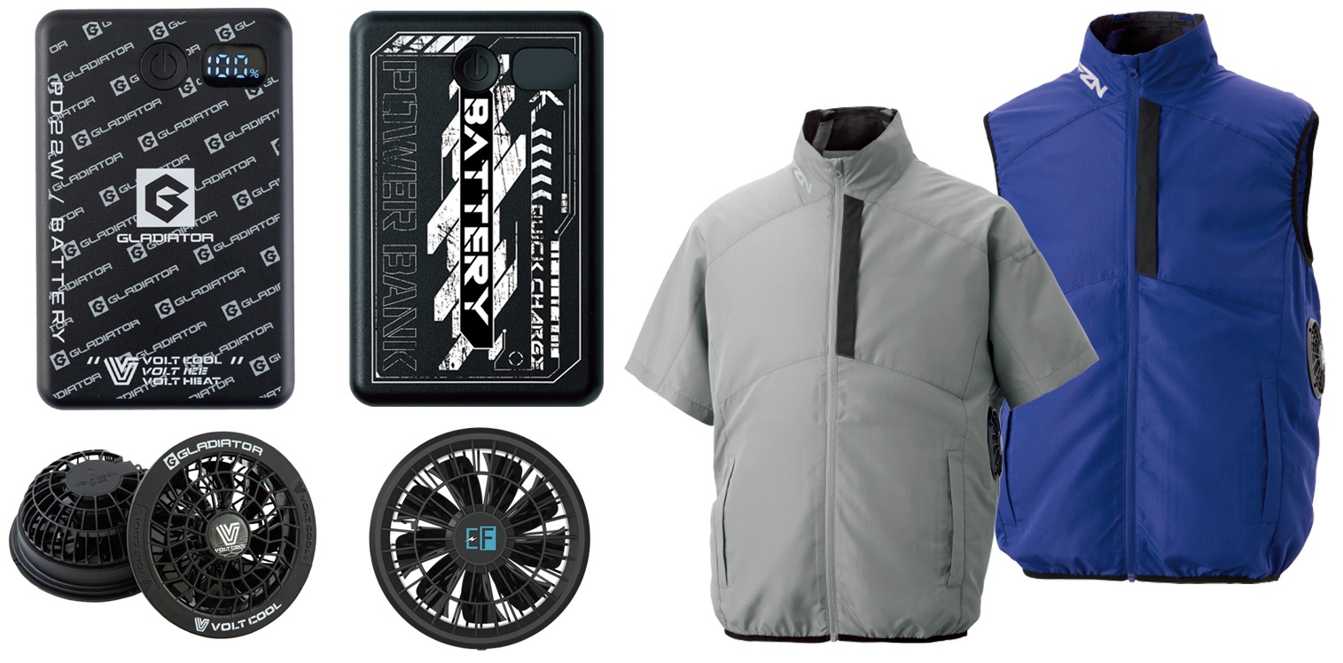 モバイルバッテリータイプの空調服・ファン付き作業着ラインナップ