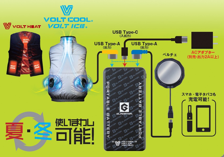 夏はファン付き作業着・冬はヒーターベストと使いまわしも可能な為、様々な用途で使い道があるのが特徴です。