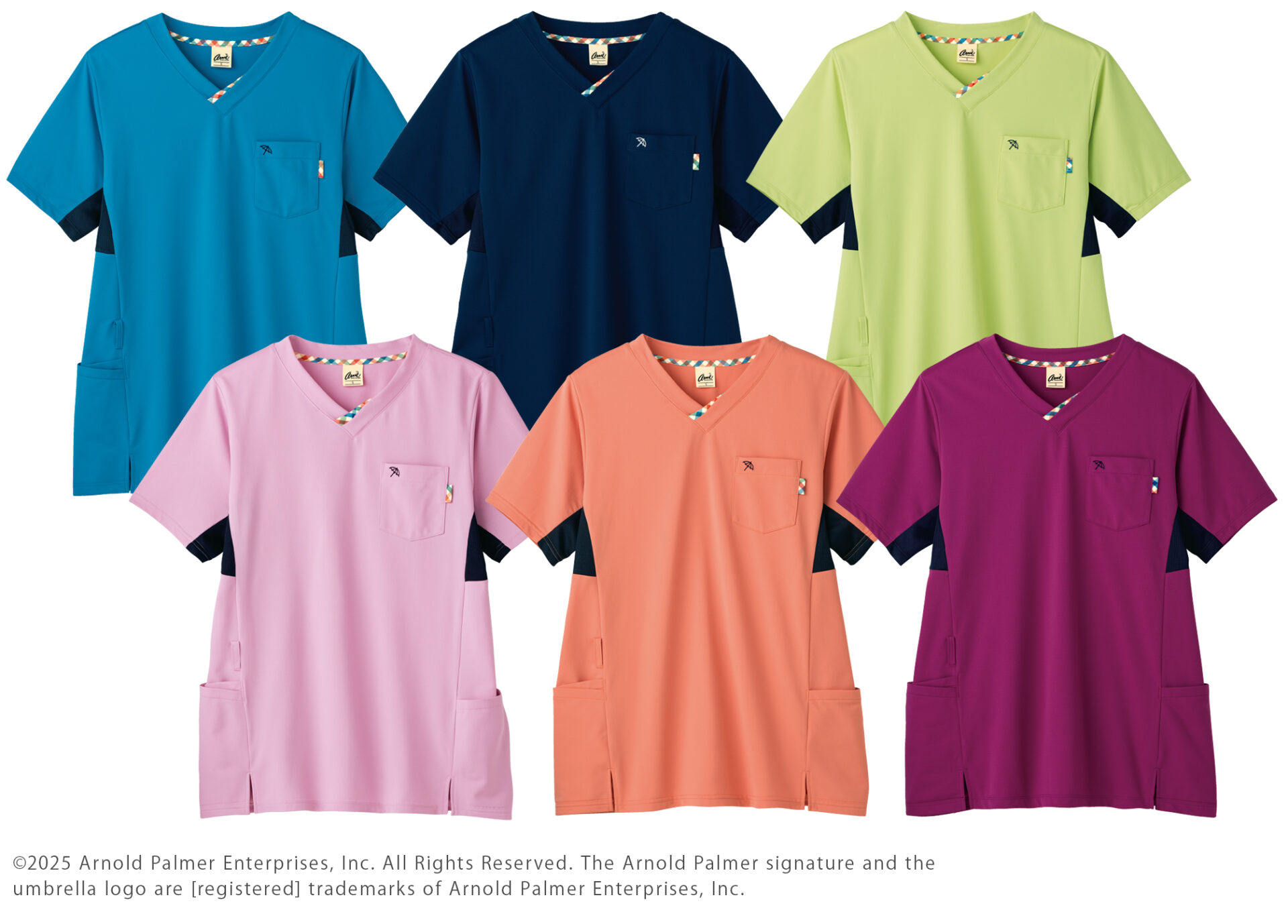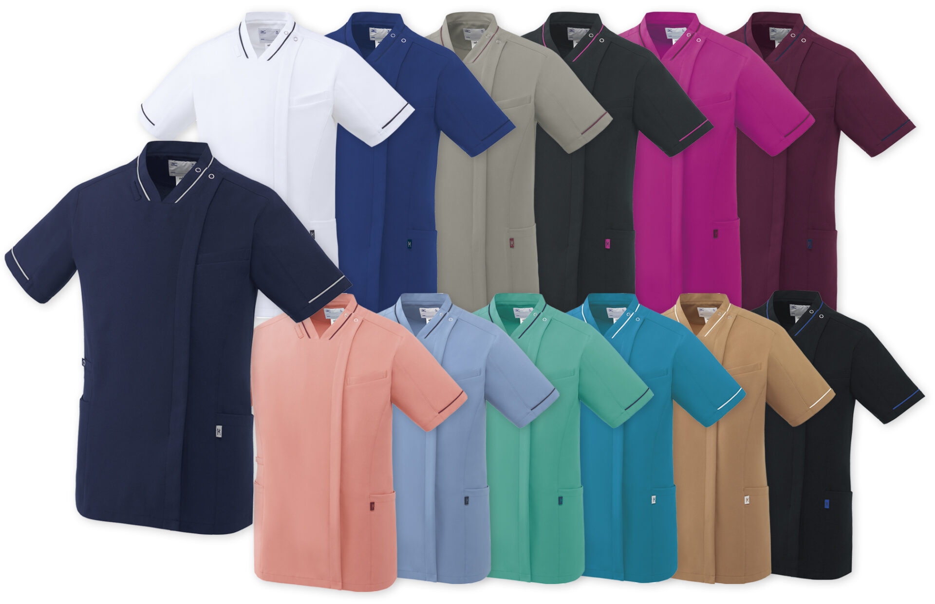 ストレッチ素材をふんだんに使い、肩や腰への負担を軽減。カラー展開も豊富で、施設のイメージに合わせて選べるのもポイントです。