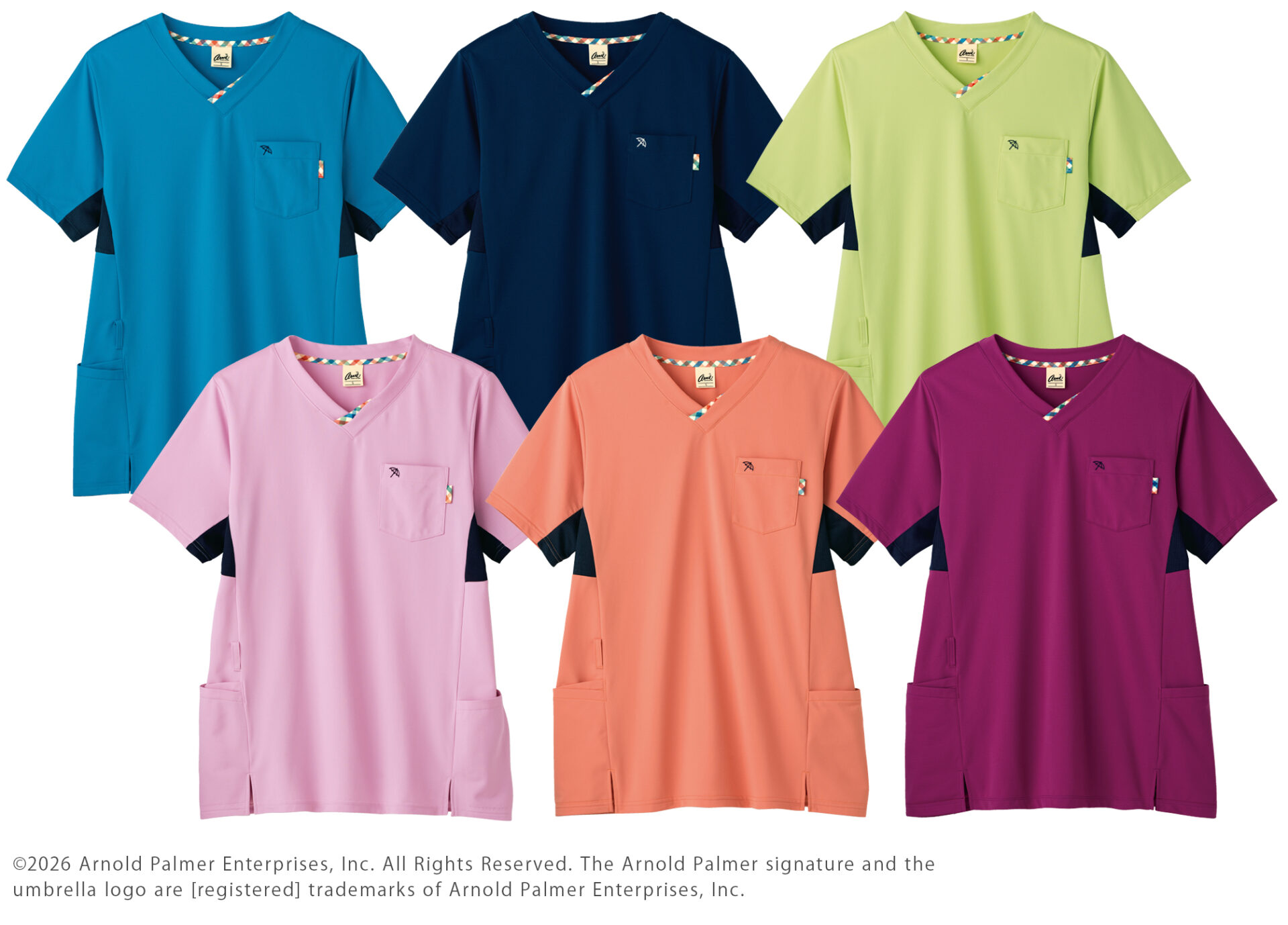 アメリカの伝説的なプロゴルファーの名を冠とした「アーニー アーノルド パーマー」。着る人やまわりの人が笑顔になれるウェアをお届けしたい。という想いが重なったラインナップ。