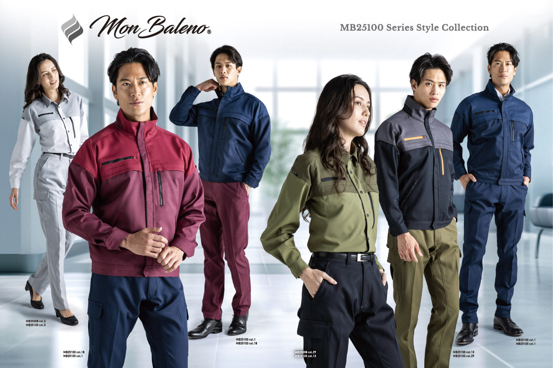 仕事中ずっと着用する作業服だからこそ、見た目にも意識を向けてリニューアルすれば、リクルート効果も期待できます。ワンポイントアドバイスとして配色に合わせて、上下の色を変えるスタイリングもおすすめです!