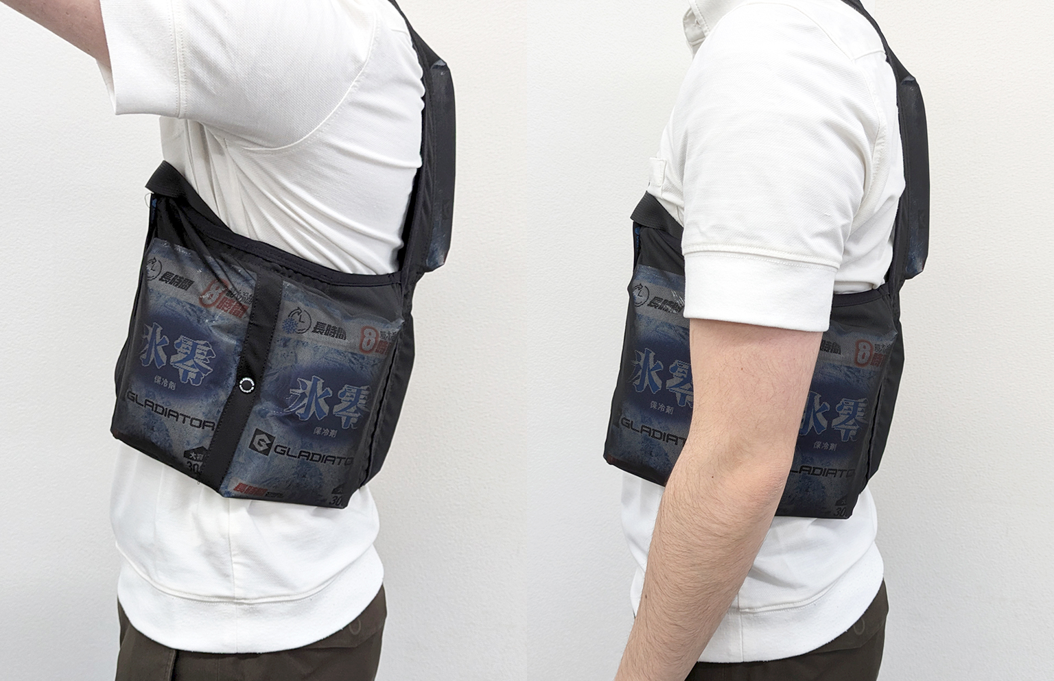 脇の保冷剤が腕に当たり、動きにくさを若干感じました。